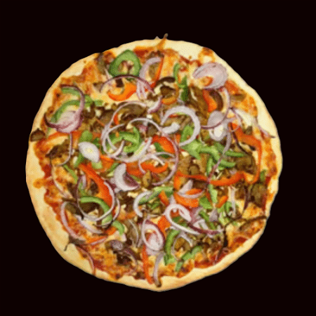 Tomatensaus, uien, paprika, champignons, kaas en döner